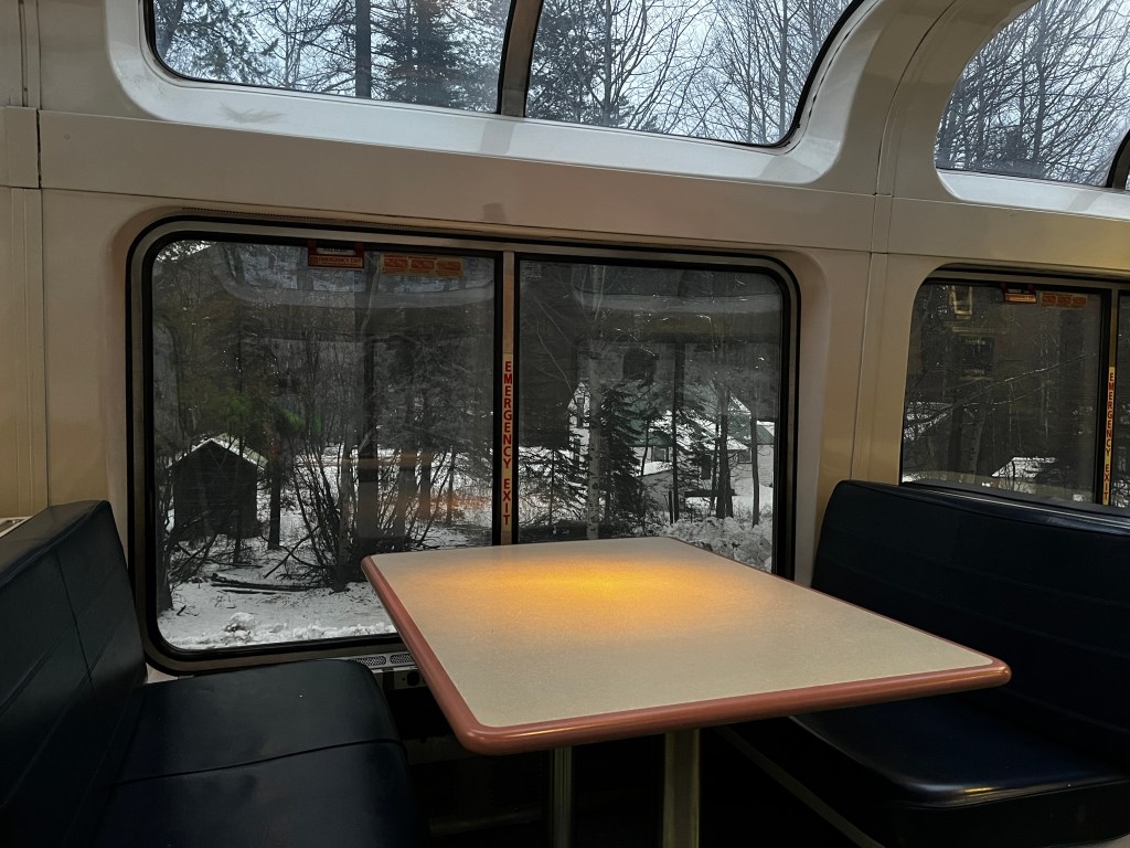 So, here I am, zipping through the snow-covered mountains of Montana, headed to ANC on Amtrak.