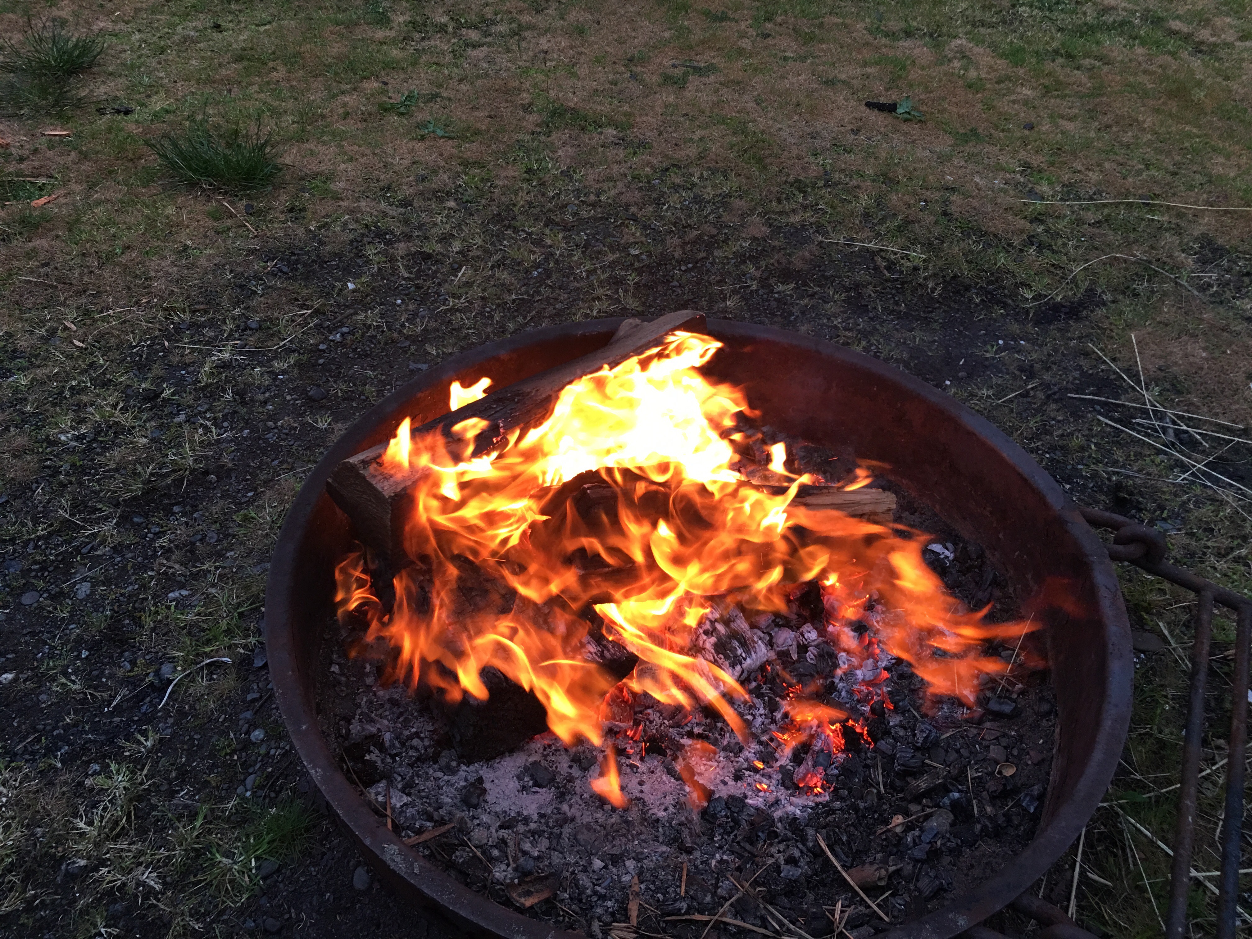 Building a fire was a challenge. It was like the wind was only blowing while we were trying to get the fire going. We had this fuel cube that you dice into powder and then set aflame. Sunny was able to do this with the flint and steel set that was in our packs. The problem was, the wood supplied at the campground was only tinder and fuel. Without kindling (which you aren’t supposed to collect in the park), this cube didn’t burn fast enough to burn the wood. I used three cubes of fuel. After we got the fire burning, the wind died down. The weather was enjoyable, although the wind blew heavily later. We didn’t let the fire go out until bedtime, with some wood that Kelley brought by from the house (Ok, yeah, that was cheating).