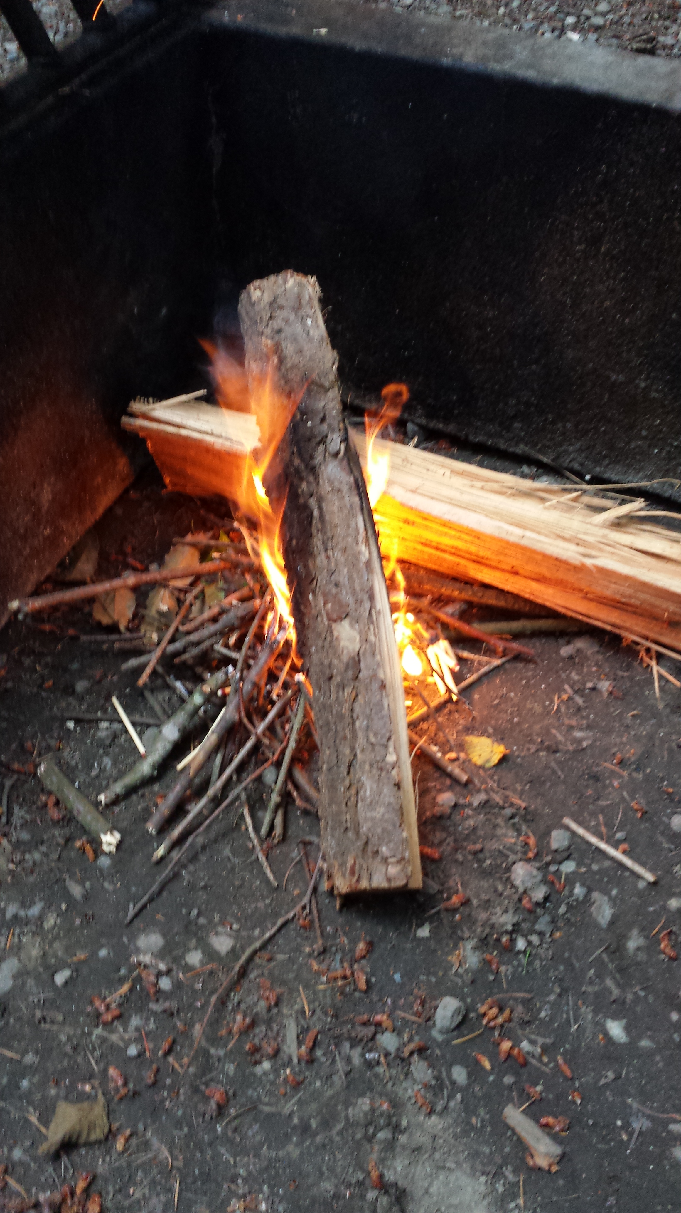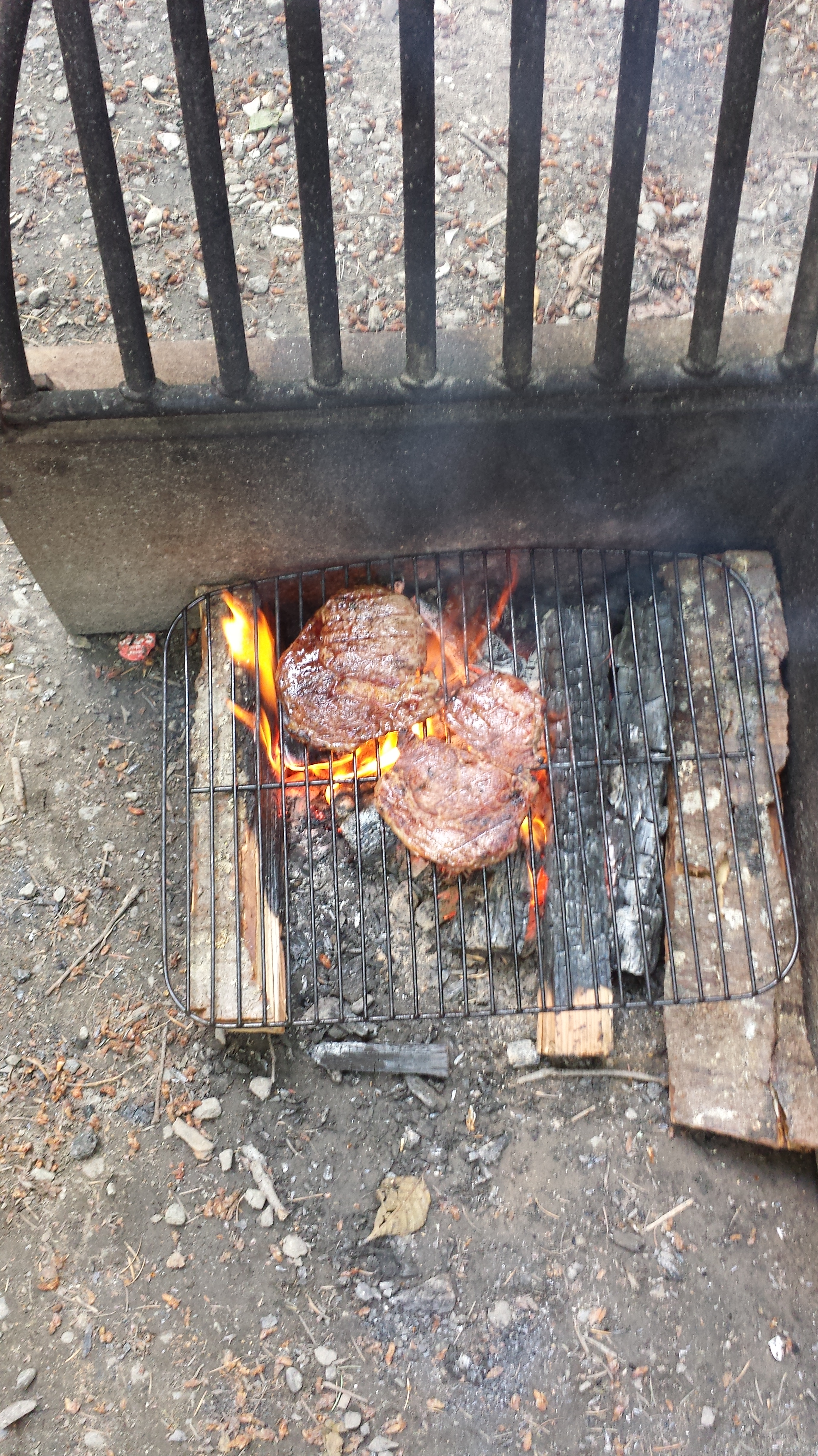 Our campsite was rather normal. We had a tent, a fire ring, a gas grill, gas stove and a picnic table that was cluttered with stuff. We had what we needed to enjoy the trip. We ate steaks both nights, and s’mores both nights. For lunch on Saturday, Sunny made a fruit salad while I worked the radio.